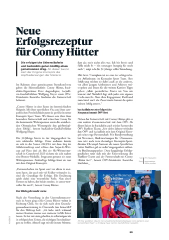 89Die erfolgreiche Skirennl%u00e4uferin und backaldrin gehen k%u00fcnftig einen gemeinsamen Weg. Ab dieser Saison ziert der Original Kornspitz die Kopfbedeckungen der Steirerin.Im Rahmen einer gemeinsamen Pressekonferenz gaben die Skirennl%u00e4uferin Conny H%u00fctter, backaldrin-Eigent%u00fcmer Peter Augendopler, backaldrin-Gesch%u00e4ftsf%u00fchrer Wolfgang Mayer sowie %u00d6SVPr%u00e4sidentin Roswitha Stadlober die Partnerschaft bekannt.%u201eConny H%u00fctter ist eine Ikone im %u00f6sterreichischen Skisport. Mit ihrer sportlichen Vita und ihrer sympathischen Pers%u00f6nlichkeit passt sie perfekt in unser Kornspitz Sport Team. Wir freuen uns %u00fcber diese besondere Partnerschaft und w%u00fcnschen Conny f%u00fcr die kommende Weltcupsaison sowie die anstehenden Olympischen Winterspiele den gr%u00f6%u00dftm%u00f6glichen Erfolg%u201c, betont backaldrin-Gesch%u00e4ftsf%u00fchrer Wolfgang Mayer.Die 32-J%u00e4hrige feierte in der Vergangenheit bereits zahlreiche Erfolge. Unter anderem kr%u00f6nte sie sich in der Saison 2023/24 mit dem Sieg im Abfahrtsweltcup und schloss den Super-G-Weltcup auf Platz drei ab. Bei der Ski-Weltmeisterschaft in Courchevel 2023 sicherte sie sich zudem eine Bronze-Medaille. Insgesamt gewann sie neun Weltcuprennen. Zuk%u00fcnftige Erfolge feiert sie nun mit dem Original Kornspitz.%u201ePartnerschaften im Sport und vor allem in meinem Sport, der auch mit viel Risiko verbunden ist, sind die Grundlage f%u00fcr Erfolge. Die Ern%u00e4hrung spielt dabei eine wesentliche Rolle. Nun einen Partner zu haben, der beides vereint, ist umso wertvoller f%u00fcr mich%u201c, betont Conny H%u00fctter.Der Blick geht nach vorneNach der Vorstellung in der Unternehmenszentrale in Asten ging es f%u00fcr Conny H%u00fctter weiter in Richtung Chile, wo sie sich nach dem Grundlagenausdauertraining in %u00d6sterreich den Feinschliffi f%u00fcr den Weltcup holt. %u201eIch habe mich w%u00e4hrend meiner Karriere immer von meinem Gef%u00fchl leiten lassen. Es hat mir stets geholfen, in schwierigen wie in erfolgreichen Zeiten, die richtigen Entscheidungen zu treffien. Aktuell sagt mir die innere Stimme, Text PR / BackaldrinFoto Newcreatings, GEPA picturesdass das noch nicht alles war. Ich bin bereit und f%u00fchle mich fft %u2013 bin sozusagen hungrig f%u00fcr noch mehr%u201c, zeigt sich die 32-J%u00e4hrige voller Tatendrang.Mit ihren Triumphen ist sie eine der erfolgreichsten Athletinnen im Kornspitz Sport Team. Ihre Erfahrung m%u00f6chte sie dabei auch an die anderen, vor allem jungen Athletinnen und Athleten weitergeben und ihnen f%u00fcr die weitere Karriere Tipps geben: %u201eMein pers%u00f6nliches Motto ist: Von nix kommt nix! Nat%u00fcrlich legt sich jeder sein eigenes Credo zurecht. Aber ohne Engagement, Flei%u00df und manchmal auch die Zusatzmeile kannst du sp%u00e4ter keinen Erfolg ernten.%u201cbackaldrin setzt erfolgreiche Kooperation mit %u00d6SV fortNeben der Partnerschaft mit Conny H%u00fctter gibt es eine weitere Zusammenarbeit mit dem %u00d6SV. Ab dieser Saison ist backaldrin auch wieder Partner des %u00d6SV Biathlon Teams. %u201eSeit vielen Jahren verbindet den %u00d6SV und backaldrin mit dem Original Kornspitz eine enge Partnerschaft. Mit Bandenwerbung bei Skirennen, Backmischungen f%u00fcr %u00dcberseerennen oder auch dem ehemaligen Kornspitz-Sportdirektor Christoph Sumann als neuen Sportlichen Leiter Biathlon gab es in der Vergangenheit zahlreiche Ber%u00fchrungspunkte. Diese langj%u00e4hrige Erfolgsgeschichte setzt sich mit der Unterst%u00fctzung des Biathlon-Teams und der Partnerschaft mit Conny H%u00fctter fort%u201c, betont %u00d6SV-Pr%u00e4sidentin Roswitha Stadlober._Neue Erfolgsrezeptur f%u00fcr Conny H%u00fctterANZEIGE%u201eMit ihrer sportlichen Vita und ihrer sympathischen Pers%u00f6nlichkeit passt Conny perfekt in unser Kornspitz Sport Team%u201c, so Wolfgang Mayer (rechts), Gesch%u00e4ftsf%u00fchrer, backaldrin.