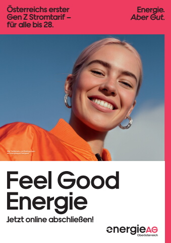 2Alle Tarifdetails und Bedingungen auf energieag.at/feelgood%u00d6sterreichs erster Gen Z Stromtarif %u2013 f%u00fcr alle bis 28.Feel GoodEnergieJetzt online abschlie%u00dfen!