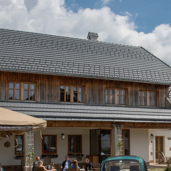 Auf einer sanften Anhöhe im oberösterreichischen Mühlviertel thront ein Hof, dessen Architektur an traditionelle Bauernhäuser erinnert. Von hier öffnet sich
