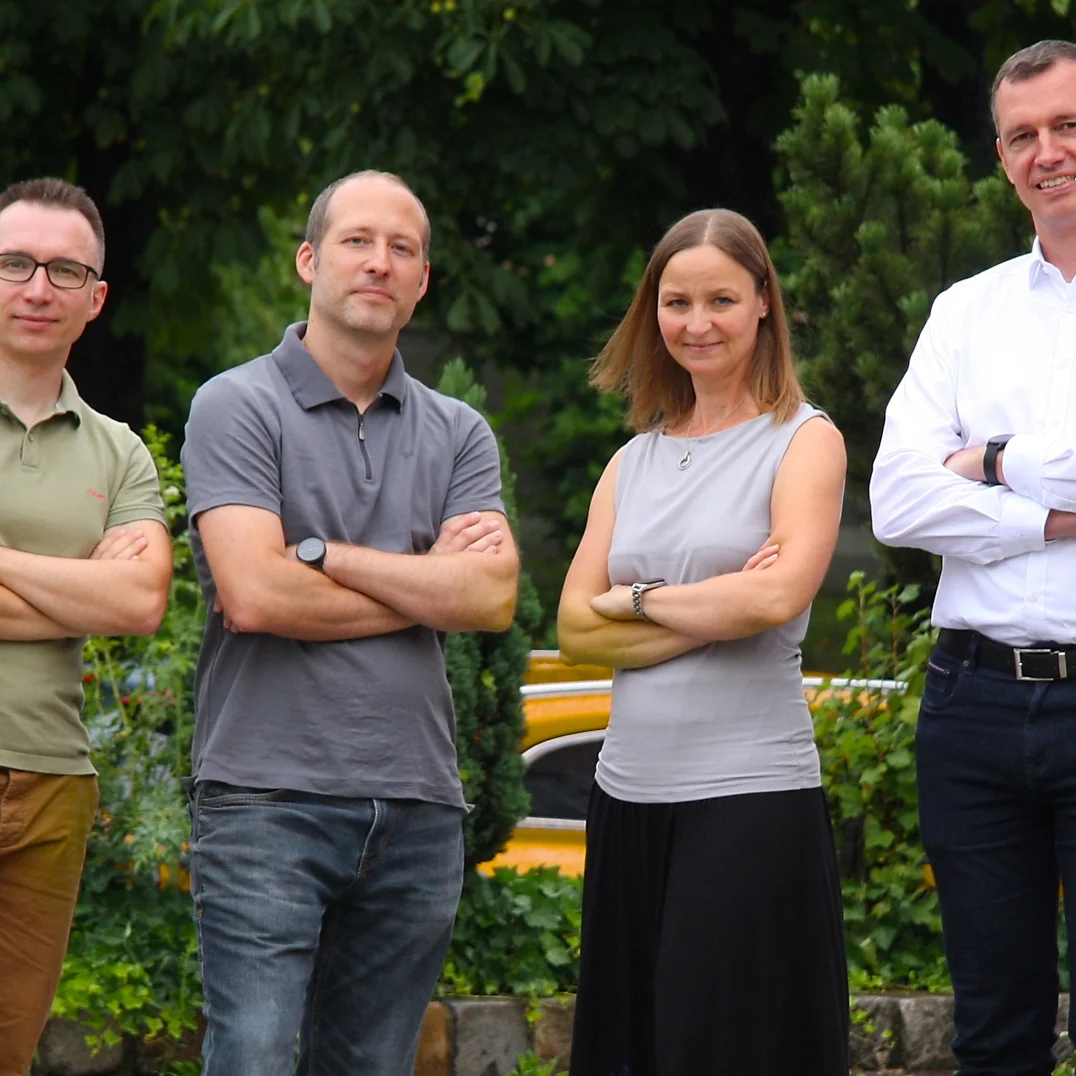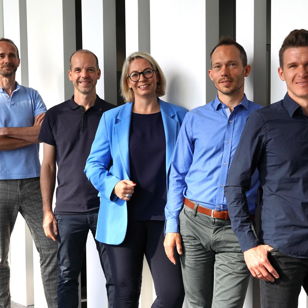 von links: Christian Stein (Geschäftsführer Wertstatt 8), Albert Ortig (Geschäftsführer Netural X), Karin Dietachmayr (Geschäftsführerin Wertstatt 8, Leiterin Konzerninnovation), Stefan Arbeithuber (Geschäftsführer Lino Solutions), Stephan Knoll (Product Owner Lino Solutions)