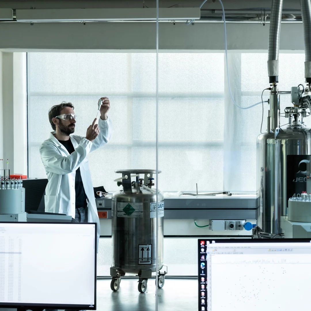 Studierende mit Laptops, Forscherinnen und Forscher in Gesprächen, Menschen, die zwischen Büros und Laboren pendeln. Ein Gewimmel aus fünfzehn verschiedenen Sprachen, die meisten Leute reden Englisch oder Italienisch miteinander, manche Deutsch. 2.400 Menschen, die hier täglich unterwegs sind. Das ist der NOI Techpark. Südtirols Innovationsviertel in Bozen. Entstanden auf dem Gelände einer ehemaligen Aluminiumfabrik, die einst zwei Drittel des italienischen Bedarfs deckte. Heute stehen hier vier Gebäude aus Glas und Stahl zwischen den Dolomiten. 68 Labore. 769 laufende Forschungsprojekte. Ein Budget von 59,2 Millionen Euro.