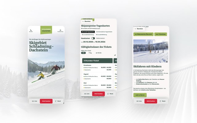 Herzstück ist ein Pimcore-basiertes Framework mit Schnittstellen zu Feratel, Incert Services und weiteren Partnern. Die Architektur folgt einem API-first-Ansatz und bildet die Grundlage für nachhaltige Weiterentwicklungen, hohe Performance und langfristige Systemstabilität. Bereits drei Bergbahn-Portale – Planai & Hochwurzen, Reiteralm und Hauser-Kaibling – wurden erfolgreich integriert. Parallel dazu wurde die digitale Markenidentität der Region modernisiert und einheitlich über alle Touchpoints ausgerollt.