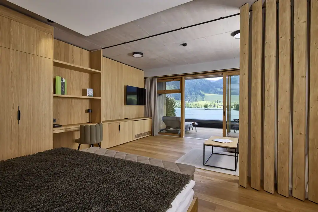 Die stilvollen, lichtdurchfluteten Suiten, ausgestattet mit hochwertigen Naturmaterialien, sind nicht nur Rückzugsorte, sondern auch Quellen der Inspiration. Hier verschmelzen sanfte Aktivität und bewusste Entspannung zu einem harmonischen Ganzen. Move & Relax – diese Philosophie gibt dem Ort seinen Rhythmus. Ob Wandern, Biken, Yoga am See oder Stand-up-Paddling: Sportlicher Genuss trifft auf wohltuende Ruhe in der Natur und schenkt nachhaltige Regeneration.