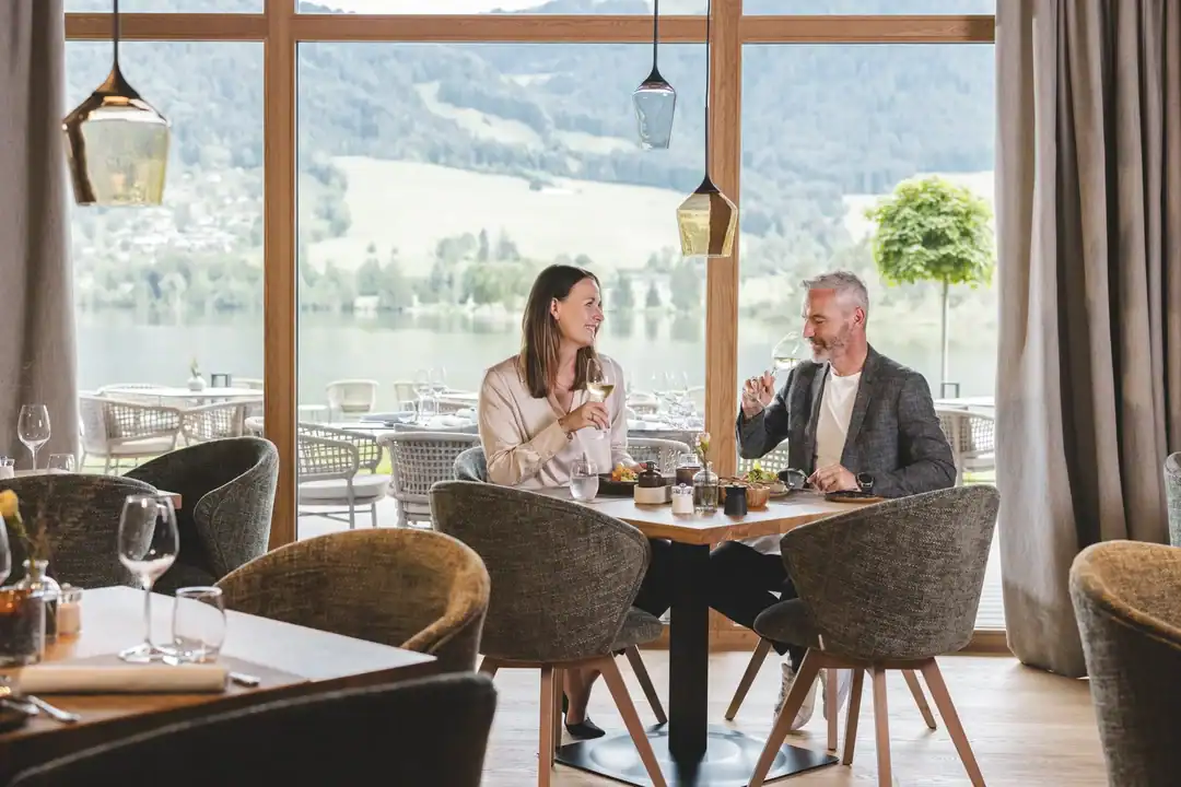 In geschmackvollem Ambiente und mit atemberaubendem Panoramablick lädt das gehobene À-la-carte-Restaurant „Das Lakes“dazu ein, kulinarische Höhepunkte mit allen Sinnen zu erleben.